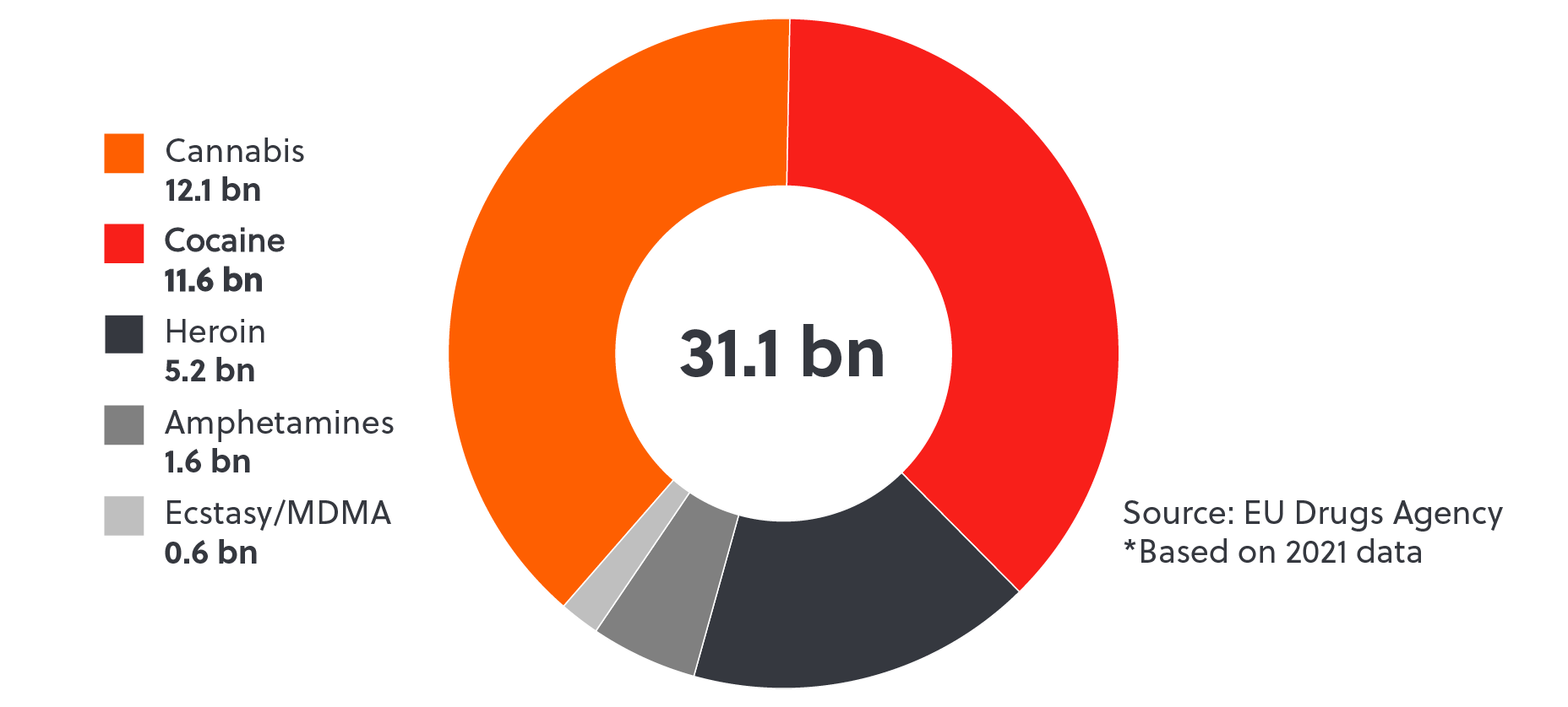 Cannabis and cocaine make up the largest share of the illicit drugs market in the EU