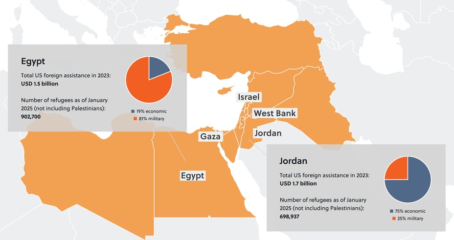 The ceasefire in the Gaza Strip has coincided with US President Donald Trump introducing a plan for “owning” Gaza, which would entail the displacement of Palestinians to neighbouring countries. Such an event would have far-reaching political, social, and security repercussions for the region, but particularly for Egypt and Jordan, writes Tamsin Hunt.