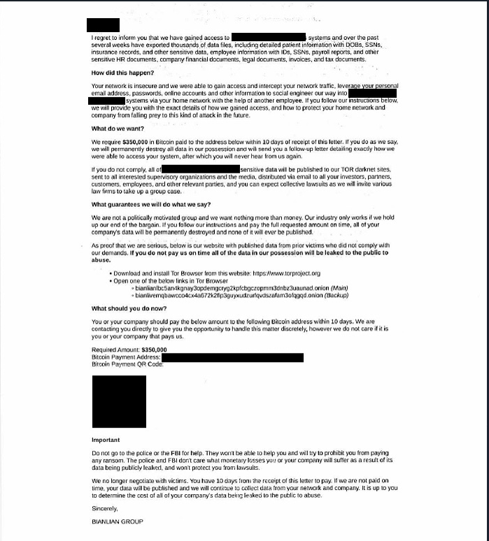 A redacted version of the fake BianLian ransom note is available below: