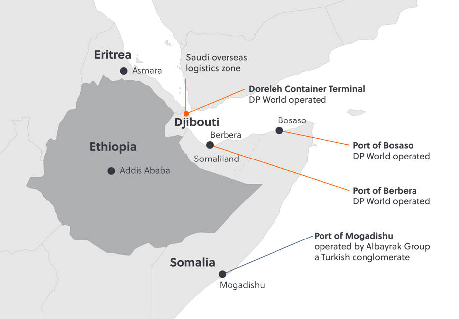 Gulf-based actors, principally from the UAE, have demonstrated a growing interest in the Horn over the last decade. In 2016, Dubai Ports World signed a USD 440 million agreement with Somaliland to develop and operate a regional trade and logistics hub at the Port of Berbera, thus expanding its existing regional container terminal operations in Djibouti. Similarly, in the neighbouring territory of Puntland, DP World signed a USD 366 million agreement in 2017 for a 30-year concession to manage and develop the Port of Bosaso, a project which is ongoing. In June 2024, perhaps triggered by the financial impact of the MoU, the Djiboutian government awarded a 92-year concession for an overseas logistics zone in the Port of Djibouti to the Government of Saudi Arabia – which some international commentators have positioned as a local competitor to the UAE. For these actors, infrastructure investment is strategic – and often a diplomatic tool – given the Horn’s geographical proximity to the Gulf, high levels of agricultural imports from the region, and security considerations around the Gulf Cooperation Council’s military operations in Yemen. Considering these recent trends, it is likely that the deep pockets of Gulf actors will continue to play a key role in the development of maritime infrastructure and investment in the Horn.