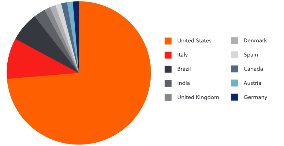 Companies targeted in the last 30 days, by country*