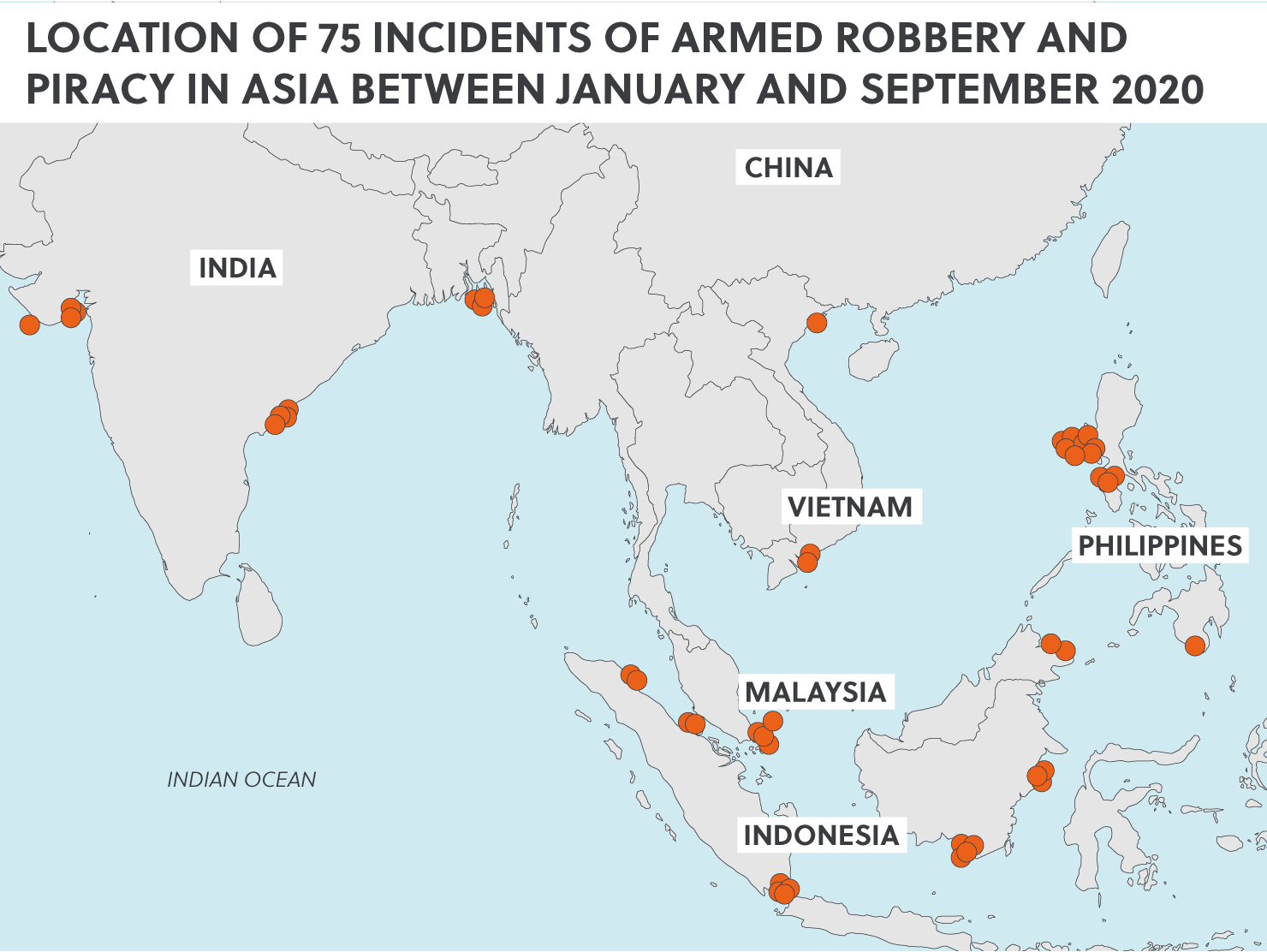 An uptick in maritime crime in Asia is raising concerns among commercial operators, national governments, and regional maritime organisations. In the first nine months of 2020, there were 75 reported incidents of armed robbery and piracy against ships in Asia, according to the Regional Cooperation Agreement on Combating Piracy and Armed Robbery against Ships in Asia (ReCAAP). This is a 39 percent rise in incidents compared to January-September 2019, and the highest number of incidents recorded since 2015. The exact reasons for rising incidents are difficult to pinpoint, although available information suggests the economic downturn amid the Covid-19 pandemic is one of the key drivers. A global economic recession has increased poverty and unemployment in the region, potentially making more people resort to criminality, including at sea. Other and longstanding drivers also remain, such as the decline of traditional fishing in the face of commercial over-fishing.