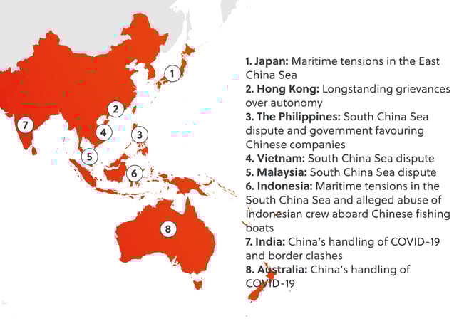 In the Philippines, the government has been accused of allowing Chinese online gaming firms to resume operations ahead of other local businesses, which could reignite anti-Chinese sentiment and protests. Rising anti-Chinese sentiment is not unique to the Philippines, as other countries have also criticised Chinese authorities’ initial handling of the pandemic and aggressive moves in the South China Sea in recent weeks. In addition to government interests, protesters across the region are increasingly targeting commercial entities over layoffs, unpaid wages, and other grievances.