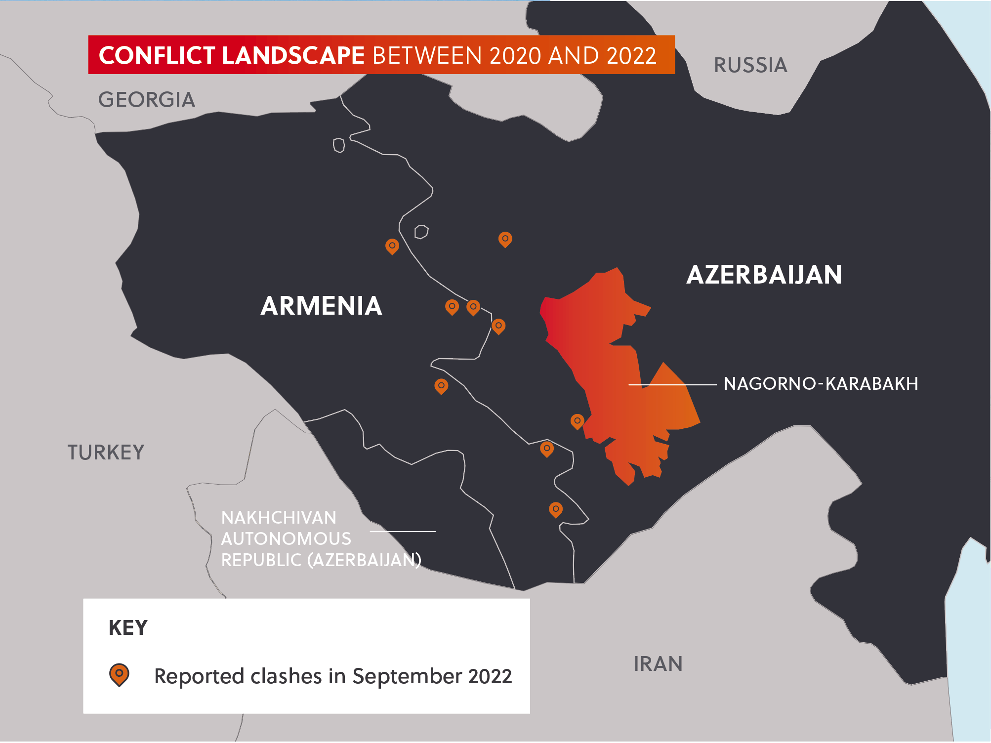 Despite renewed EU-backed peace negotiations since the mid-September clashes, there remain several challenges to achieving a permanent solution to the historic conflict. The conflict is fundamentally linked to Nagorno-Karabakh, and both sides are far from agreeing on the final status of Nagorno-Karabakh (see background box on the 2020 war). Azerbaijan wants Armenia to recognise its full sovereignty over the disputed territory, while Armenia wants special security provisions and rights for the region’s ethnic Armenian populations. Nagorno-Karabakh leaders remain committed to self-determination and have become increasingly critical of what they view as Armenian Prime Minister Nikol Pashinyan’s tendency to make major compromises to Azerbaijan, which adds another layer of complexity to this crisis.